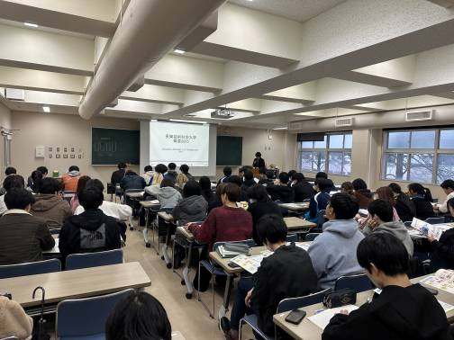 令和7年12月25日(木)、海外に留学した専攻科生による長期インターンシップ報告会ならびに物質工学科進路ガイダンスを開催しました。