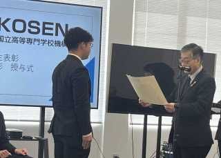 なお,表彰式は,令和8年3月24日(火)に高専機構本部八王子オフィスにおいて行われ、高専機構谷口理事長より、表彰状が授与されました。